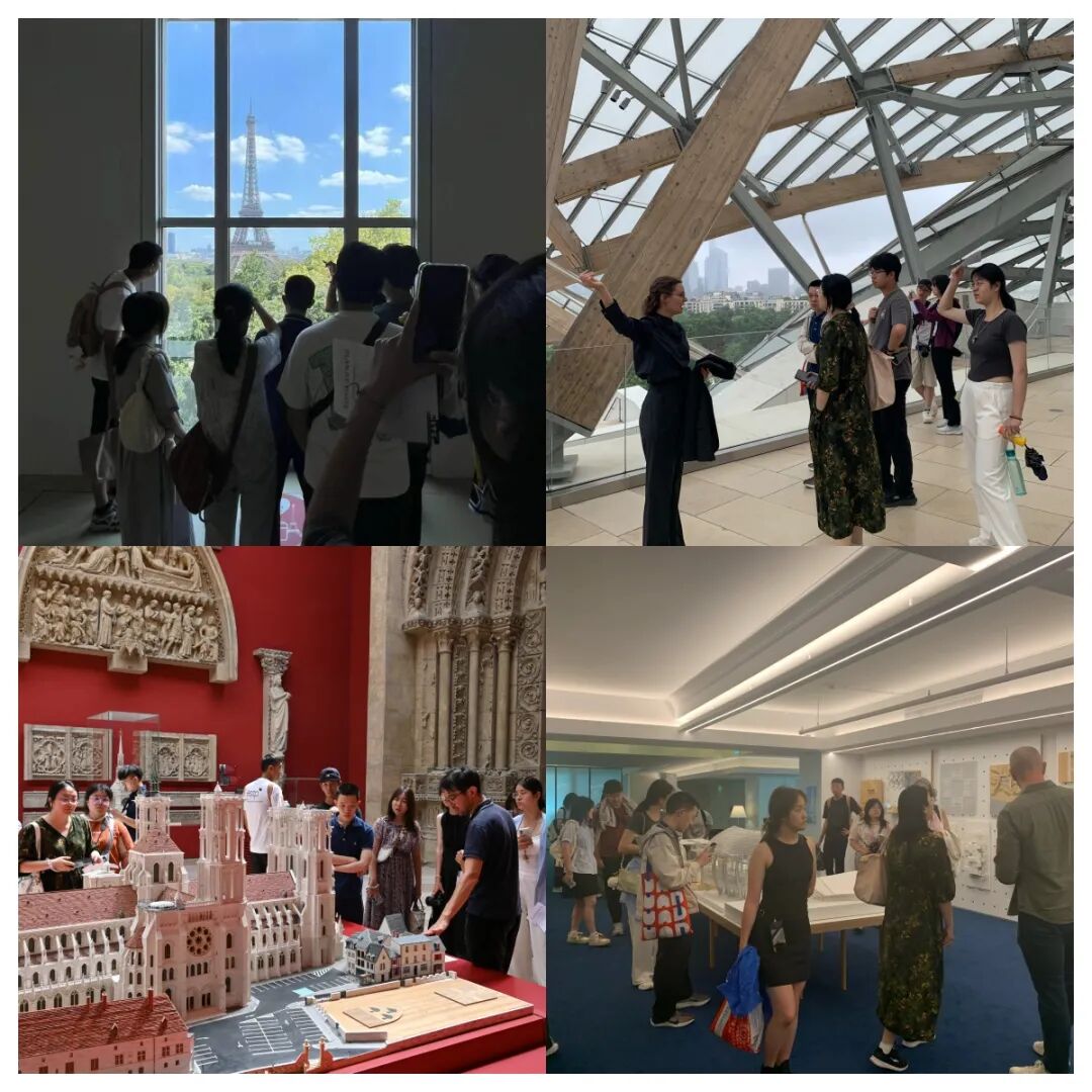 法国基础设施与遗产更新的专业参观是暑期学校的核心内容。在巴黎,师生们聆听卢浮宫-拉德芳斯轴线、卢浮宫博物馆建筑改造新文艺复兴项目讲解;到访安东尼波勒车站建筑工地、巴黎大皇宫,了解施工项目与维修工作的具体流程;参观路易威登基金会艺术博物馆和Valode et Pistre建筑师事务所,感受法国现代建筑结构的魅力并了解法国基建项目典型案例。